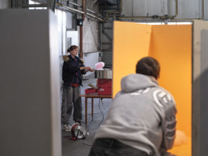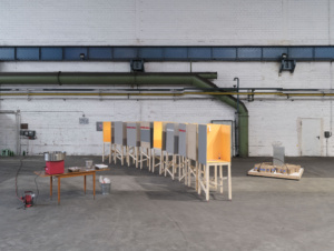 At the end of each cycle, the performers disassemble the installation and relocate it to another area within Hall 9 at Areal Böhler, physically and symbolically reconfiguring the space of power and surveillance. The lenticular photographic prints that mark the next site act as placeholders of political memory and false promises.